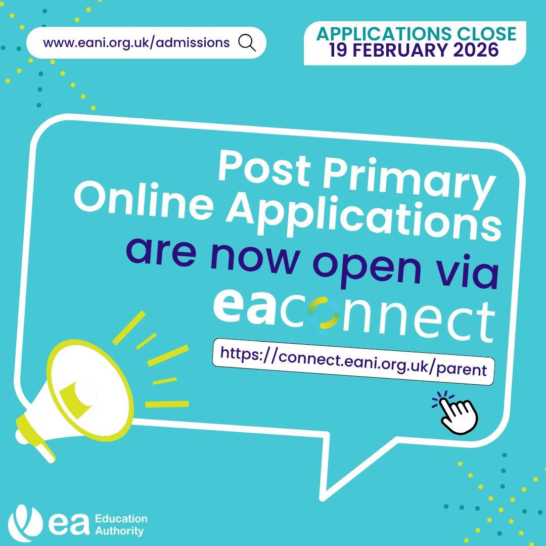 Post Primary applications open tomorrow, Tuesday 27th January, for September 2026 via EA Connect!