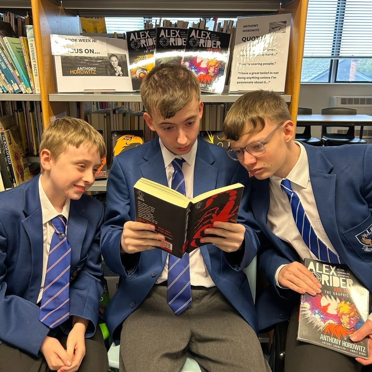 The NI library service has been working with organisations like the BBC to highlight this week as Book Week (https://www.bbc.co.uk/events/ejn6gw). Our own library has had lots of interest in our new titles and our contribution has been to highlight the work of the ever popular author Anthony Horowitz. Think Alex Rider and you’re there with his best bits! These students from our junior school have enjoyed their experience with our display materials and we’d love to see more students tell us about their favourite authors too.