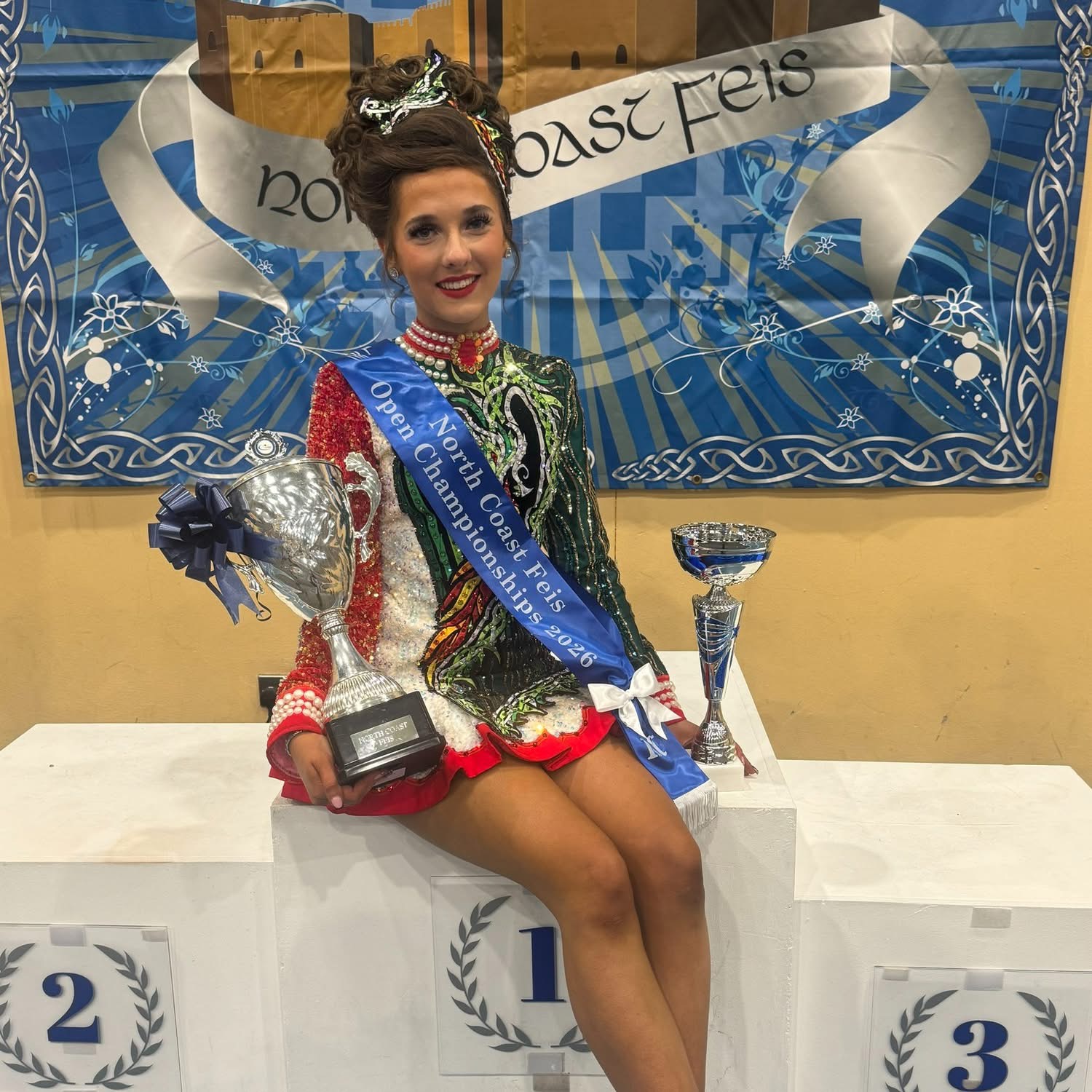 Molly Keys continues to shine as an exceptional talent in Irish dancing, building on years of dedication, discipline, and impressive competitive success. Her hard work was on full display last weekend at the North Coast Feis, where she delivered outstanding performances and proudly earned the title of North Coast Open Champion. Molly’s ongoing achievements are a testament to her passion for dance, her unwavering commitment, and her ability to perform at the highest level. Her journey is one of continual growth and inspiration—well done, Molly!