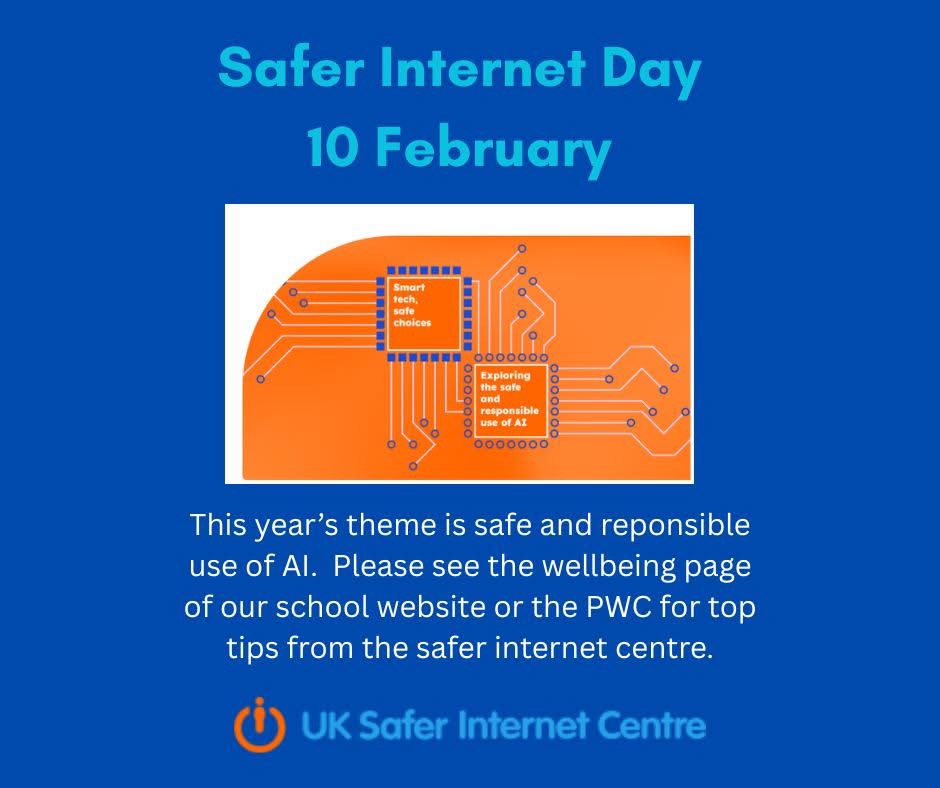 Official Safer Internet Day being on 10th February (during the half term holiday), we will be sharing Safer Internet messages and activities during the week of 16th February 2026.