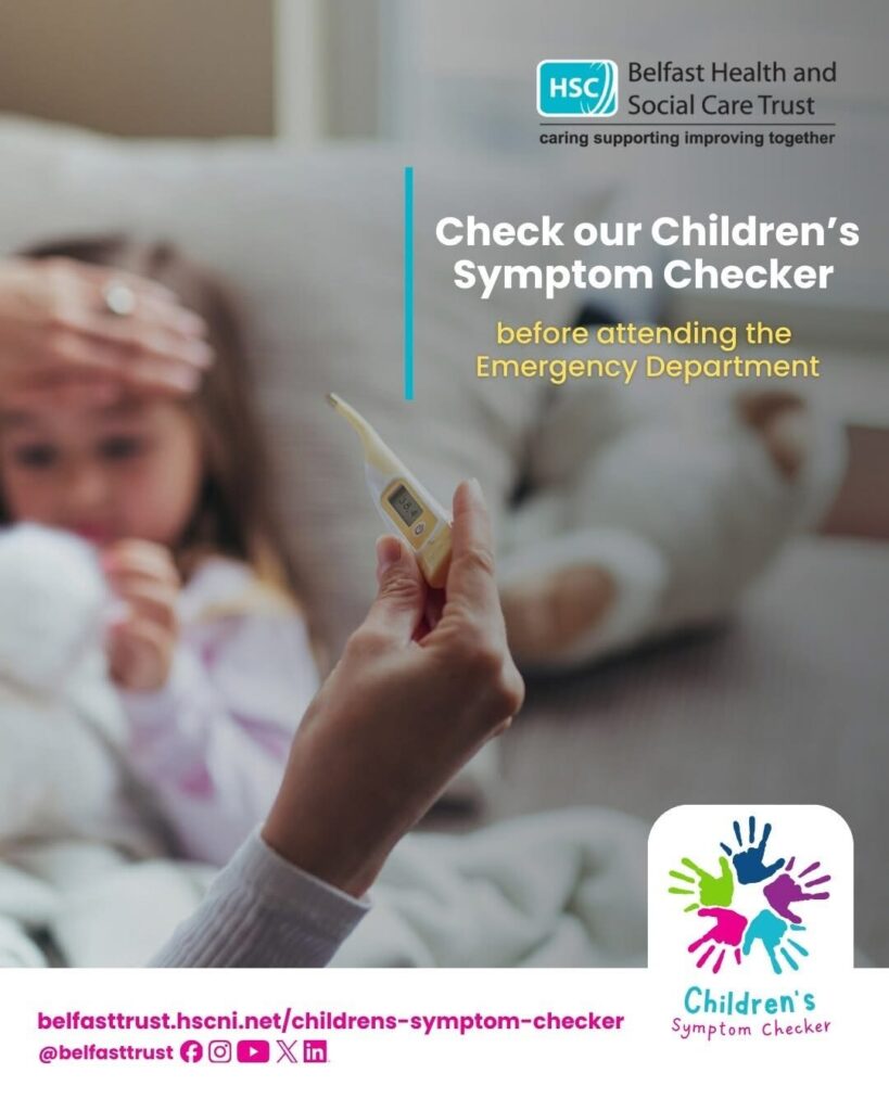 We would like to draw your attention to The Royal Belfast Hospital for Sick Children's Symptom Checker, which parents and carers might find helpful going into the winter months. The Children's Symptom Checker is an online tool that parents can access at any time which provides trusted advice to help them to make informed decisions about their children's health. Children regularly get sick, especially at this time of the year and it can be worrying for parents when they are unsure of the best course of action. The Children's Symptom Checker is easy to use, informative and provides high quality advice for parents or guardians to consider when their child becomes unwell.
