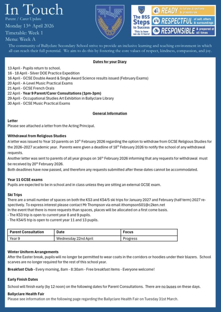 Please find below our Weekly Communication Bulletin for Parents and Carers, and other important information, which has been sent out to you via Sims App.