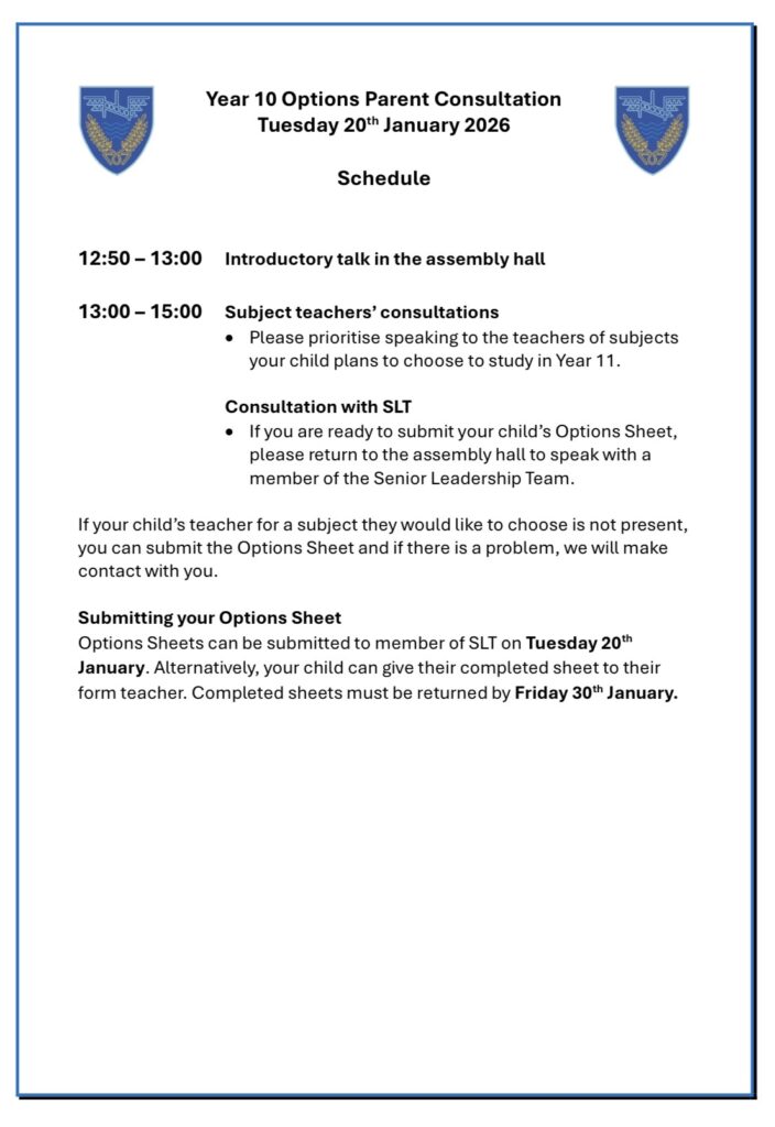 Year 10 Parent Consultation 20th January