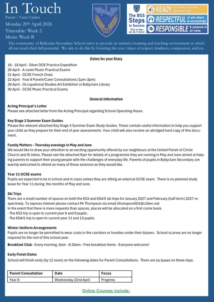 Please find below our Weekly Communication Bulletin for Parents and Carers, and other important information, which has been sent out to you via Sims App.