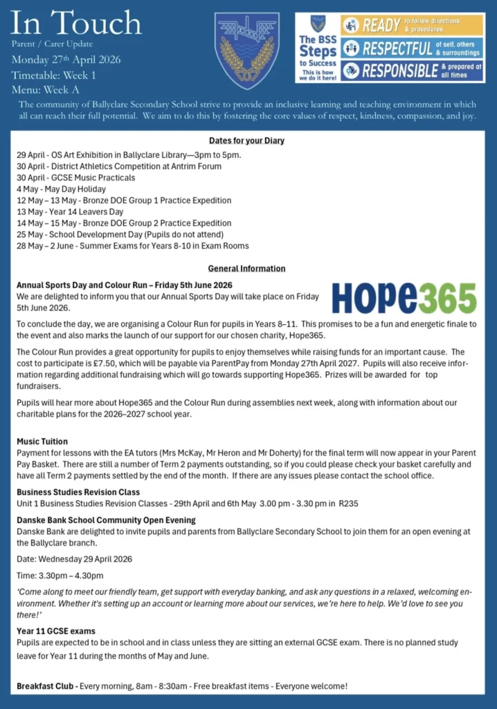 Please find below our Weekly Communication Bulletin for Parents and Carers, and other important information, which has been sent out to you via Sims App.