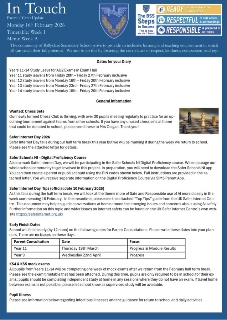 Please find below our Weekly Communication Bulletin for Parents and Carers, and other important information, which has been sent out to you via Sims App.